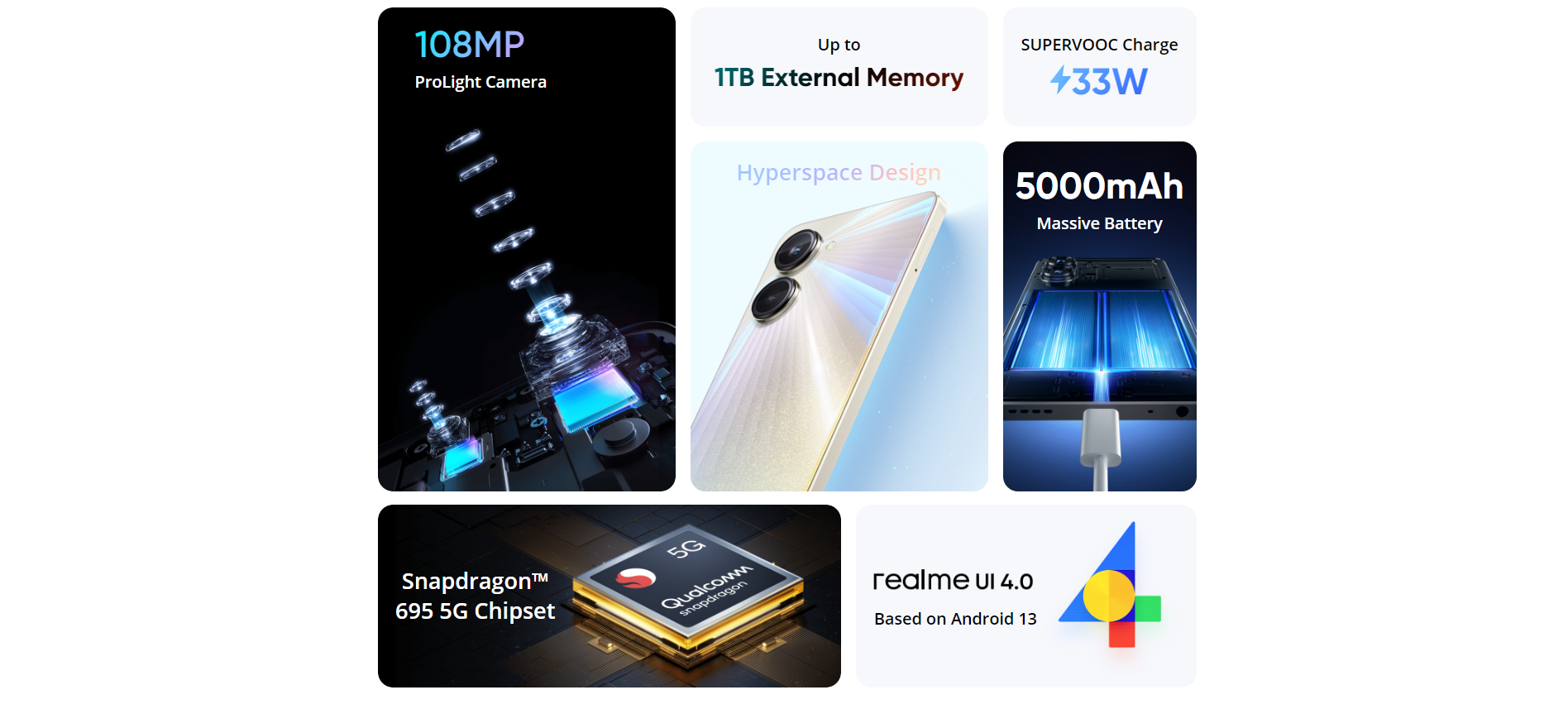 - Chipset : Qualcomm SM6375 Snapdragon 695 5G